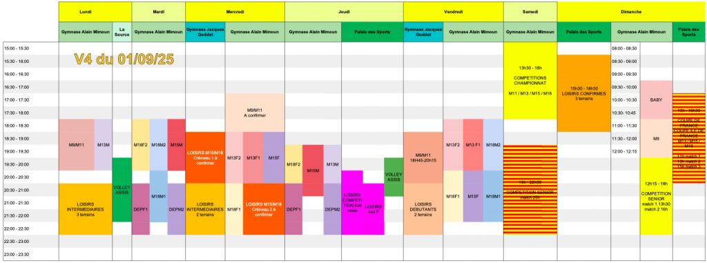 La saison 2025-2026 est lancée. Veuillez trouver ci-dessous les créneaux des différentes sections.